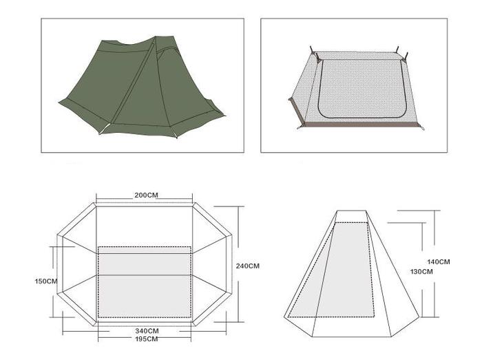 Inner tent: High density mesh,size:195*150*130cm,about 1.6kg.