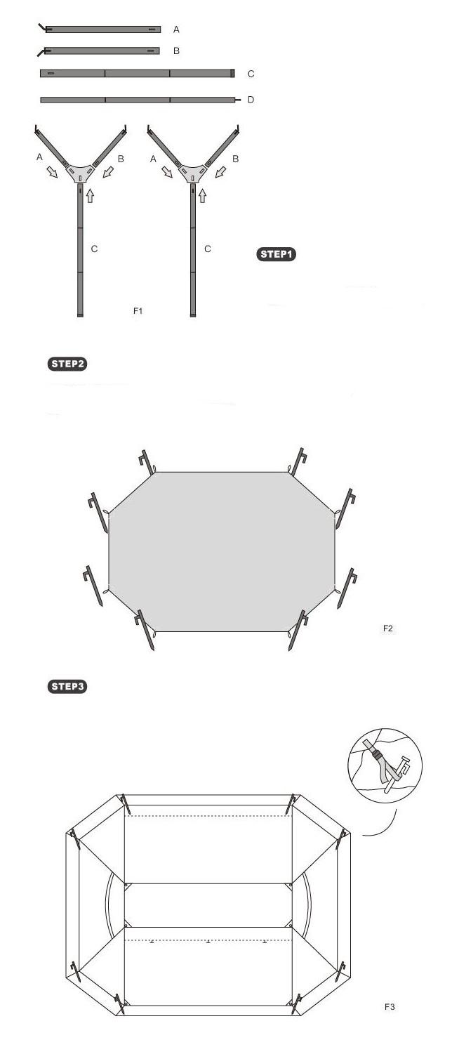 Outside shell: Tech Polyester 300D waterproof >3000mm,size:340*240*140cm,about 12kg.