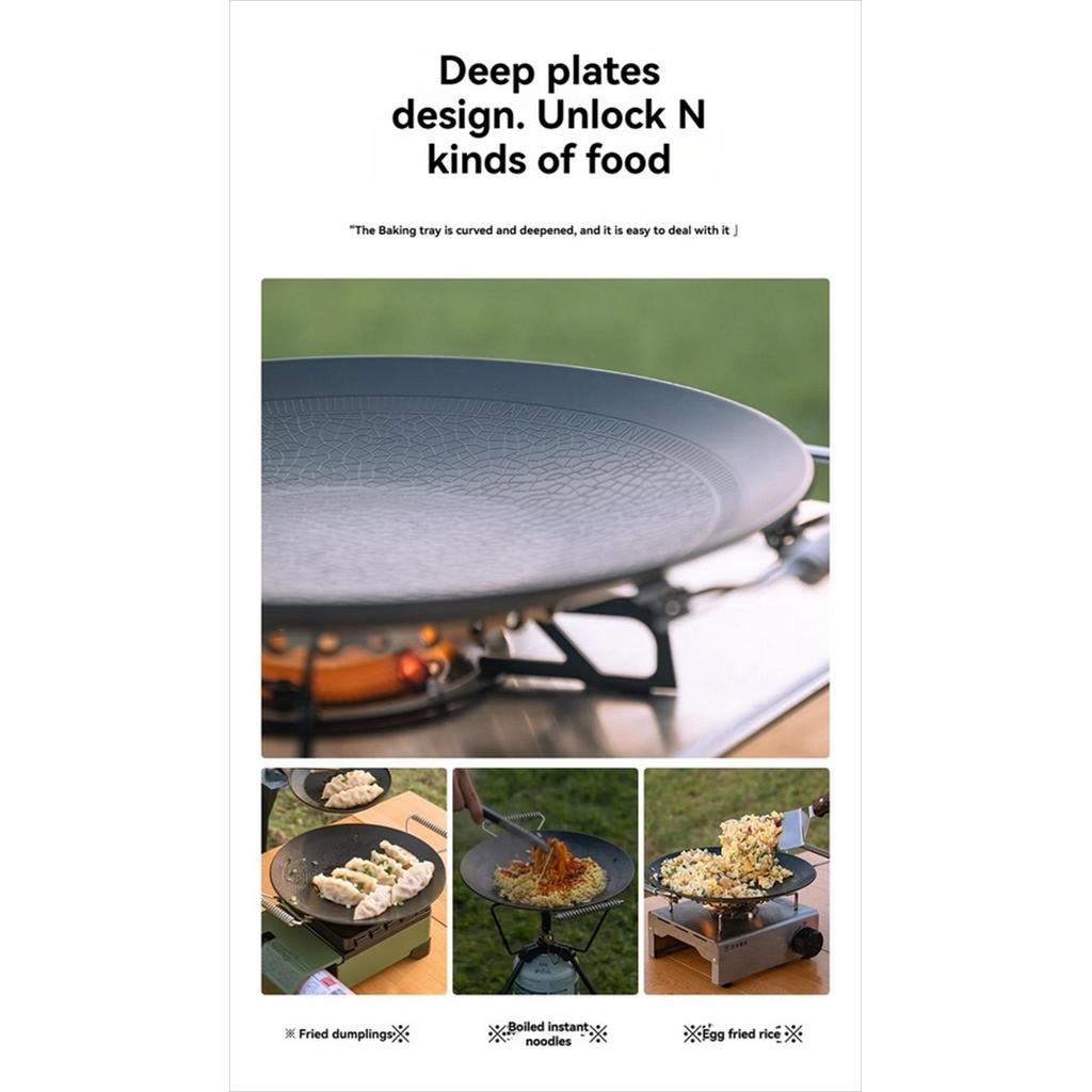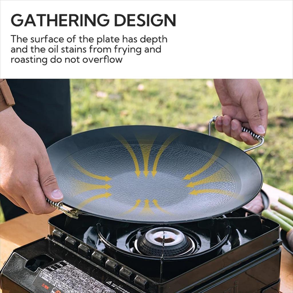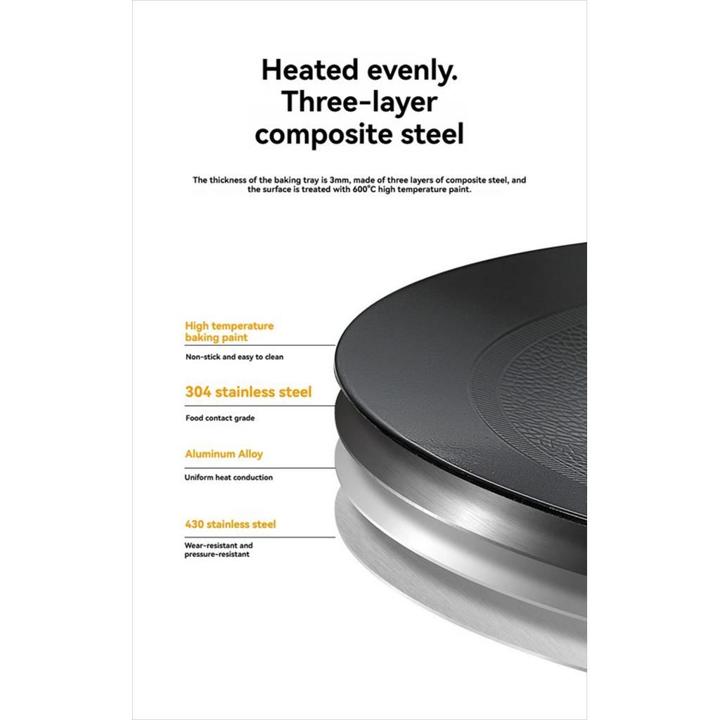 – Desain Gathering (Cekung): Bagian tengah piring memiliki kedalaman (cekung) sehingga minyak hasil panggangan terkumpul di tengah dan tidak meluber keluar.