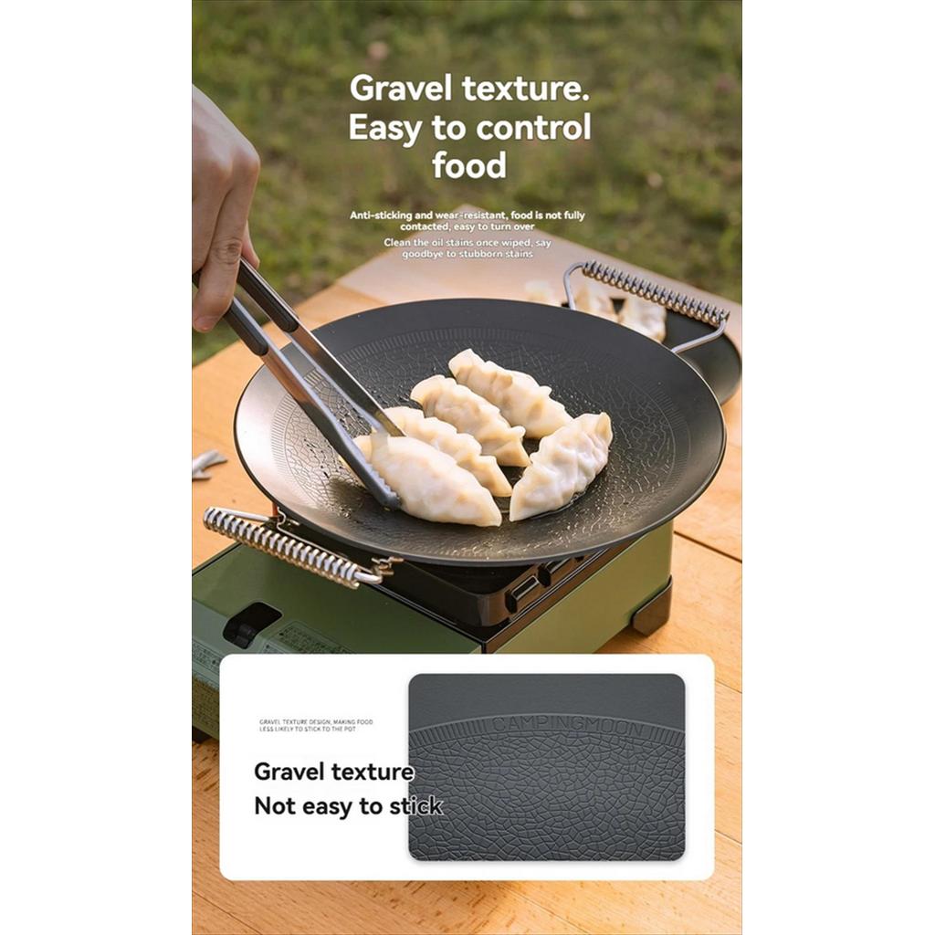 – Tekstur Gravel Anti Lengket: Permukaan wajan memiliki desain gravel texture yang unik, membuat makanan tidak menempel sepenuhnya sehingga sangat mudah dibalik dan dibersihkan dari noda minyak.