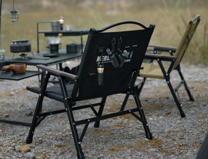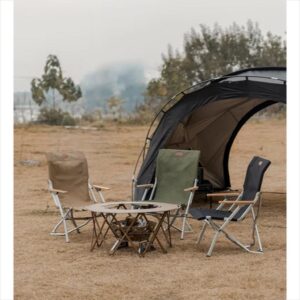 Dengan frame aluminium 6063 yang ringan namun kokoh, kursi ini mampu menahan beban hingga 140 kg. Dudukannya menggunakan Double Layer 900D Oxford Cloth yang kuat dan nyaman, ditambah sandaran tangan dari Oak Handrail yang memberi kesan elegan.